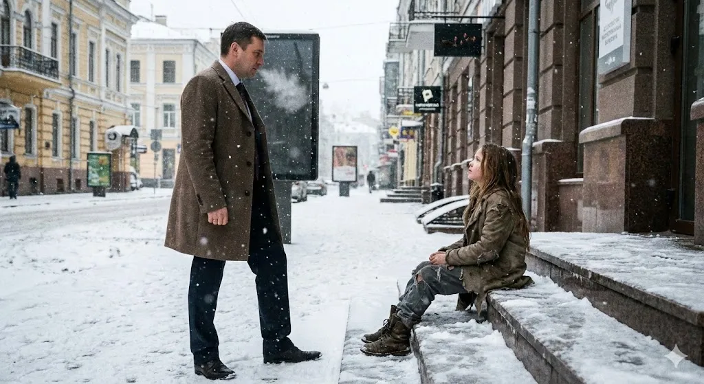 У входа в его компанию на холодных плитах сидела молодая девушка, лет двадцати пяти, в старой куртке. Перед ней лежала кепка с несколькими монетами. Прохожие спешили мимо, не удостаивая её взглядом. Но мужчина каждый день видел эту просительницу у своего здания и сегодня не сдержался.