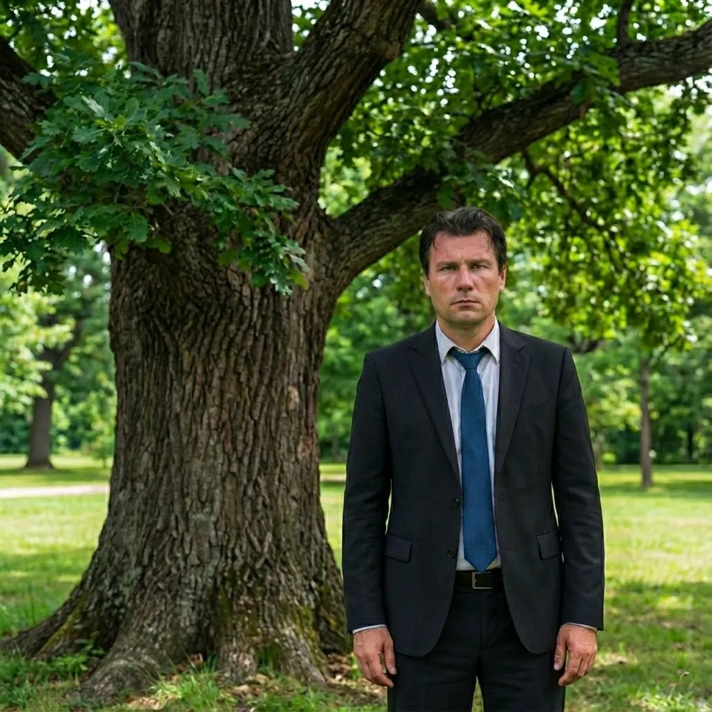 Утро выдалось тяжелым, словно сама природа скорбела вместе с городом. Улицы были укутаны плотным, липким туманом — одним из тех, что стелются по земле грязной серой вуалью, приглушая звуки просыпающегося мегаполиса и размывая краски до оттенков мокрого асфальта. Миллионер Андрей Бондаренко медленно, словно во сне, пробирался между рядами молчаливых гранитных плит, сжимая в руке большой букет белых хризантем.