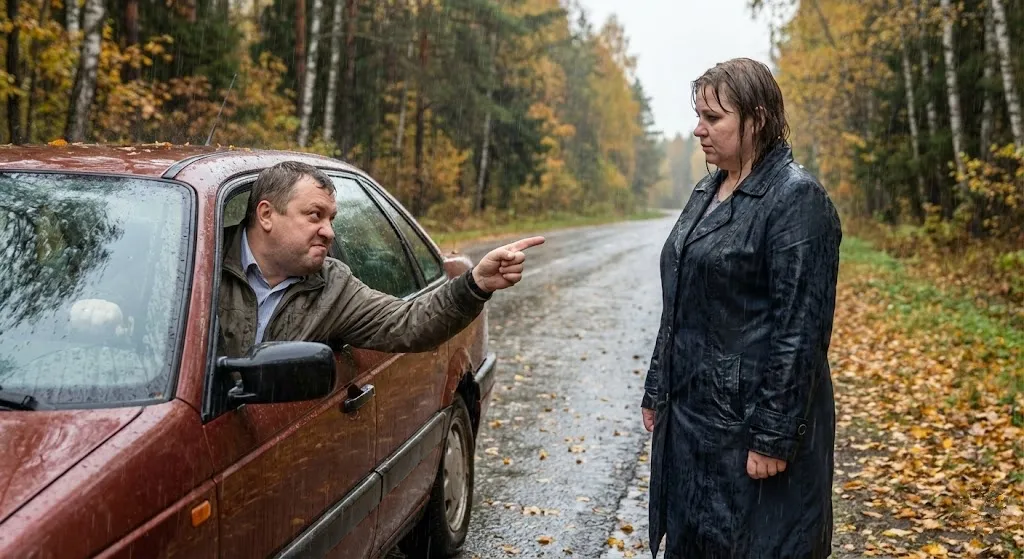 После ссоры муж выставил меня из машины посреди трассы под ливень. Я дрожала от холода, пока рядом мне притормозил черный внедорожник. Из него вышел пожилой мужчина и тихо сказал: «Садись, внученька, притворись моей роднёй, и я помогу тебе так, как твой муж даже представить не может».